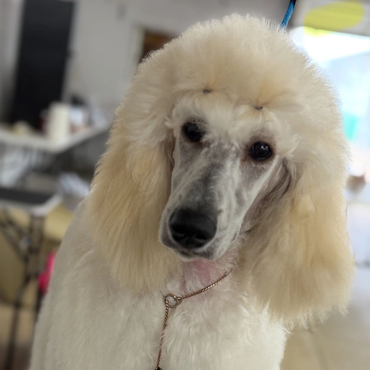 Gloria will join our program in the Spring of 2027 pending completion of her full health testing and title work with AKC and UKC. My plans are to breed her to a fully health tested and titled white standard for a litter of white and light cream puppies. Please inquire early if you may have interest.
