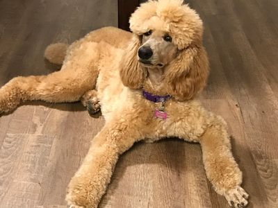 Fern is a very intuitive dog, who always seems to anticipate your needs. She has an exceptionally sweet and loving personality, and she is a people focused girl who is always up for an adventure. Fern particularly enjoys trips to the zoo where she can see the animals. She also loves kids and is a wonderful poodle ambassador when she is out working in the community. Fern has lovely refinement and is truly a beautiful dog, with a gorgeous head and a sweetly feminine expression.