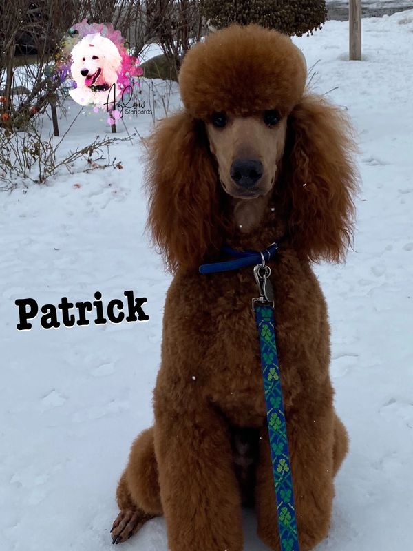 Patrick is a gorgeous solid red male with personality PLUS! He loves to learn, loves to please and just adores kids. He is very people focused and always has a happy and jolly demeanor. Patrick completed AKC's Canine Good Citizen title (CGC) at 6 months of age, then AKC CGCA (Canine Good Citizen Advanced) and TKN (Trick Novice) titles as well.